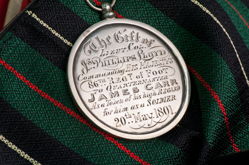 Medals to recognise an act of bravery or campaign service were first issued by Queen Victoria in 1858. Prior to this regiments in the British army had their own medals made such as this silver medal which was presented on 20 May 1801 to Quarter Master James Carr of the 86th Foot.