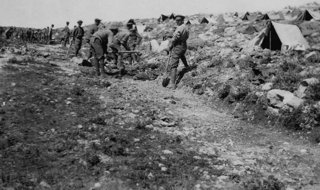 | Irish Fusiliers road building in Palestine, 1917.© |
