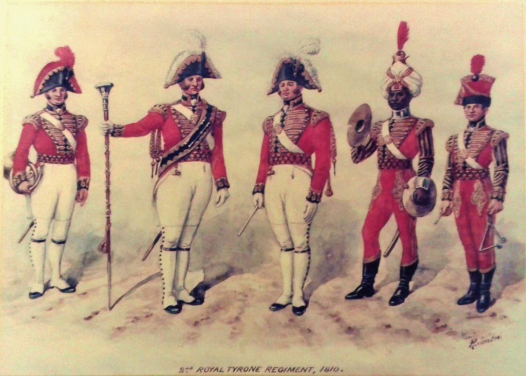 (Right, 2nd Royal Tyrone Regiment, 1810, detail from a Simkin in the collection of the Inniskillings Museum)